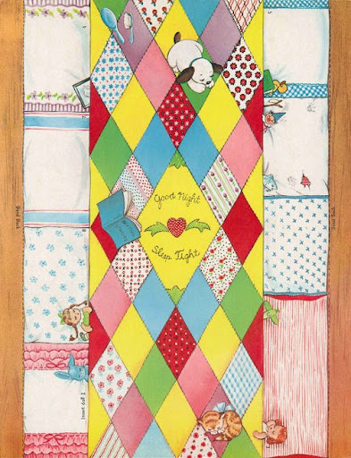 This is a page of school clothes. The Old Woman has a clock in her hand making sure they get to school on time.